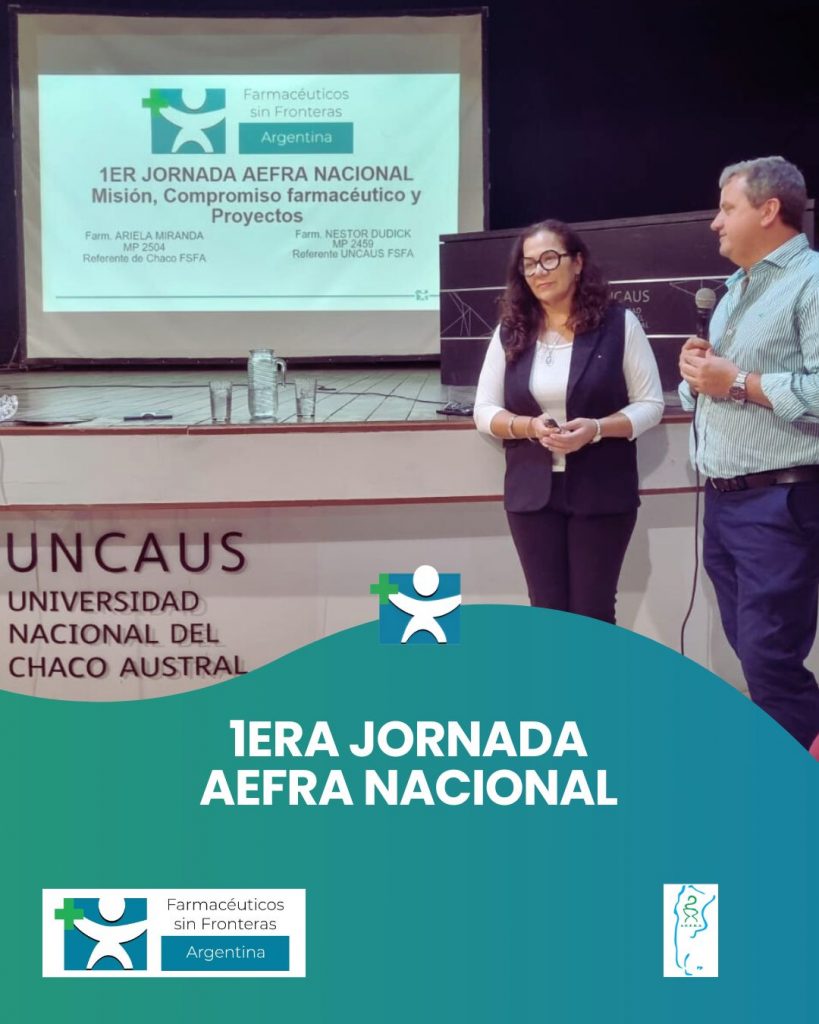 FSFA también estuvo presente en el Congreso Nacional de AEFRA (Asociación de Estudiantes de Farmacia de la República Argentina), junto a Ariela Miranda y Nestor Dudik, compartiendo experiencias de trabajo solidario, proyectos en curso y la relevancia del voluntariado farmacéutico en la salud pública.